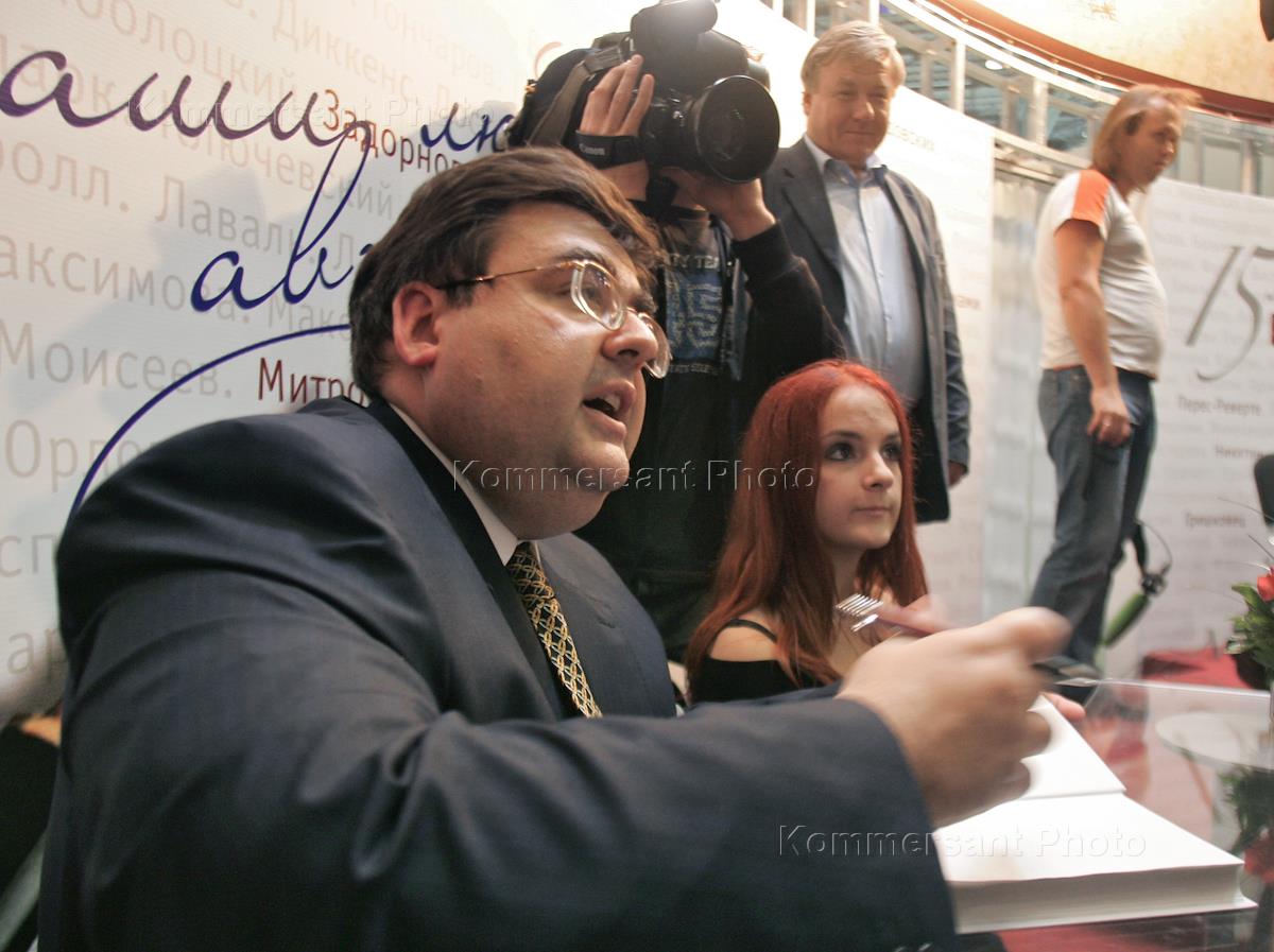 Открытие XIX Московской международной книжной выставки-ярмарки на территории Всероссийского Выставочного Центра (ВВЦ). Заместитель председателя Комитета Государственной думы России по конституционному законодательству и государственному строительству, член фракции Либерально-демократической партии России (ЛДПР) Алексей Митрофанов (слева) на презентации своей книги.