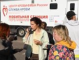 Акция "День донора" в рамках проекта "Агрегатор решений антикризисного управления в сфере донорства крови и костного мозга" в музее-заповеднике "Коломенское". Участники акции во время забора крови в передвижном пункте.