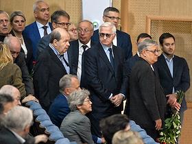 Церемония прощания с бывшим министром экономики России, членом Совета по правам человека (СПЧ) Евгением Ясиным в здании НИУ "Высшая школа экономики". Научный руководитель Института институциональных исследований ВЭШ Ярослав Кузьминов на церемонии.