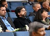 Церемония прощания с бывшим министром экономики России, членом Совета по правам человека (СПЧ) Евгением Ясиным в здании НИУ "Высшая школа экономики". Журналист Евгений Бунтман (в центре) на церемонии.