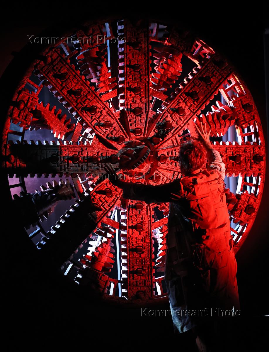 Пресс-показ спектакля "Иван Васильевич" режиссера Сергея Газарова в Московском академическом Театре сатиры. Актер Илья Малаков в роли изобретателя Тимофеева во время спектакля.