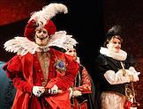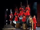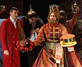 Пресс-показ спектакля "Иван Васильевич" режиссера Сергея Газарова в Московском академическом Театре сатиры. Актер Иван Михайловский в роли Шведского посла (слева) во время спектакля.