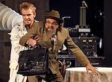 Пресс-показ спектакля "Иван Васильевич" режиссера Сергея Газарова в Московском академическом Театре сатиры. Актеры Илья Малаков в роли изобретателя Тимофеева (справа) и Артем Минин в роли Жоржа Милославского во время спектакля.
