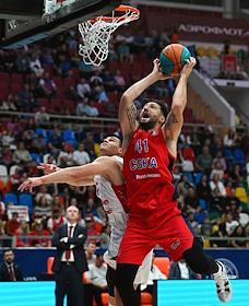 Единая лига ВТБ по баскетболу. Матч между командам ЦСКА (Москва) - МБА (Москва) на спортивной арене "Мегаспорт". Игрок команды ЦСКА Никита Курбанов (слева) во время матча.