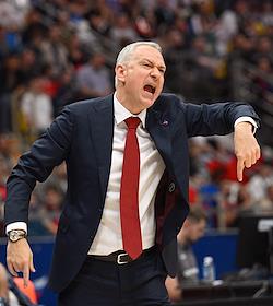 Единая лига ВТБ по баскетболу. Матч между командам ЦСКА (Москва) - МБА (Москва) на спортивной арене "Мегаспорт". Главный тренер команды ЦСКА Эмил Райкович во время матча.