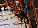 Антикоррупционный форум российского бизнеса, посвященный практическим аспектам реализации в компаниях Национального плана противодействия коррупции на 2021-2024 годы, законодательства о противодействии коррупции и Антикоррупционной хартии российского бизнеса в Российском союзе промышленников и предпринимателей (РСПП). Жанровая фотография. Ноги участников форума.