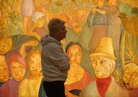 Выставка "Борис Григорьев: Первый мастер на свете" в Музее Фаберже. Посетитель на выставке.