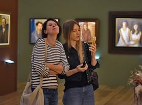Выставка "Борис Григорьев: Первый мастер на свете" в Музее Фаберже. Посетители на выставке.