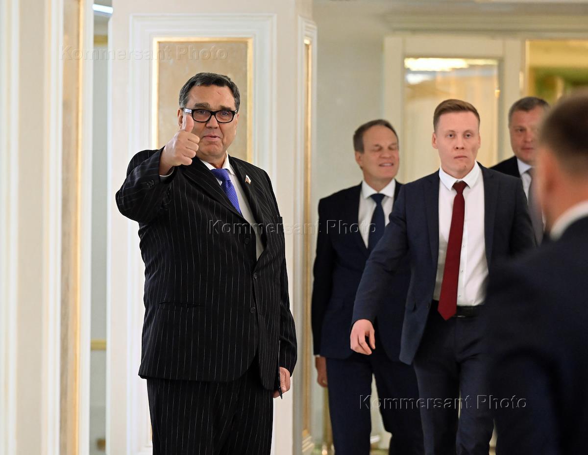 Парламентские слушания "О параметрах проекта федерального бюджета на 2024 год и на плановый период 2025 и 2026 годов" в Совете Федерации (СФ) России. Представитель в СФ России от исполнительного органа государственной власти Сахалинской области Григорий Карасин перед началом слушаний.