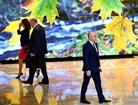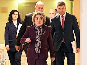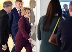 Парламентские слушания на тему "О параметрах проекта федерального бюджета на 2024 год и на плановый период 2025 и 2026 годов" в Совете Федерации (СФ) России. Председатель СФ России Валентина Матвиенко (в центре) и руководитель аппарата СФ России Геннадий Голов (справа) перед началом слушаний.
