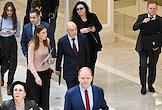 Интерьеры Совете Федерации России. Жанровая фотография. Сотрудники технических служб в фойе.