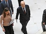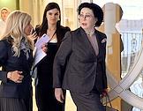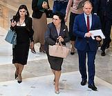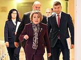 Парламентские слушания на тему "О параметрах проекта федерального бюджета на 2024 год и на плановый период 2025 и 2026 годов" в Совете Федерации (СФ) России. Председатель СФ России Валентина Матвиенко (справа) и руководитель аппарата СФ России Геннадий Голов (в центре) перед началом слушаний.