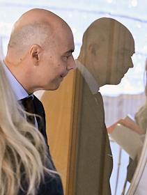 Парламентские слушания "О параметрах проекта федерального бюджета на 2024 год и на плановый период 2025 и 2026 годов" в Совете Федерации (СФ) России. Представитель в СФ России от исполнительного органа государственной власти Республики Карелия Владимир Чижов перед началом слушаний.