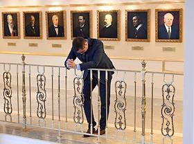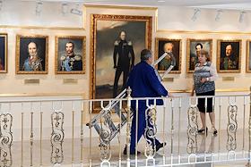 Интерьеры Совете Федерации России. Жанровая фотография. Портреты императора Александра I и российских государственных деятелей в фойе.