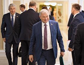 Парламентские слушания "О параметрах проекта федерального бюджета на 2024 год и на плановый период 2025 и 2026 годов" в Совете Федерации (СФ) России. Представитель в СФ России от законодательного (представительного) органа государственной власти Ставропольского края Геннадий Ягубов (в центре) перед началом слушаний.