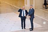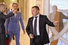Парламентские слушания "О параметрах проекта федерального бюджета на 2024 год и на плановый период 2025 и 2026 годов" в Совете Федерации России. Председатель Законодательного собрания Ленинградской области Сергей Бебенин (слева) перед началом слушаний.