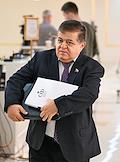 Парламентские слушания "О параметрах проекта федерального бюджета на 2024 год и на плановый период 2025 и 2026 годов" в Совете Федерации (СФ) России. Представитель в СФ России от исполнительного органа государственной власти Сахалинской области Григорий Карасин перед началом слушаний.