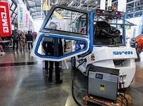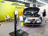 International construction forum and exhibition 100+ TechnoBuild at the Ekaterinburg-Expo exhibition center. Genre photography. Charging stations for electric vehicles.