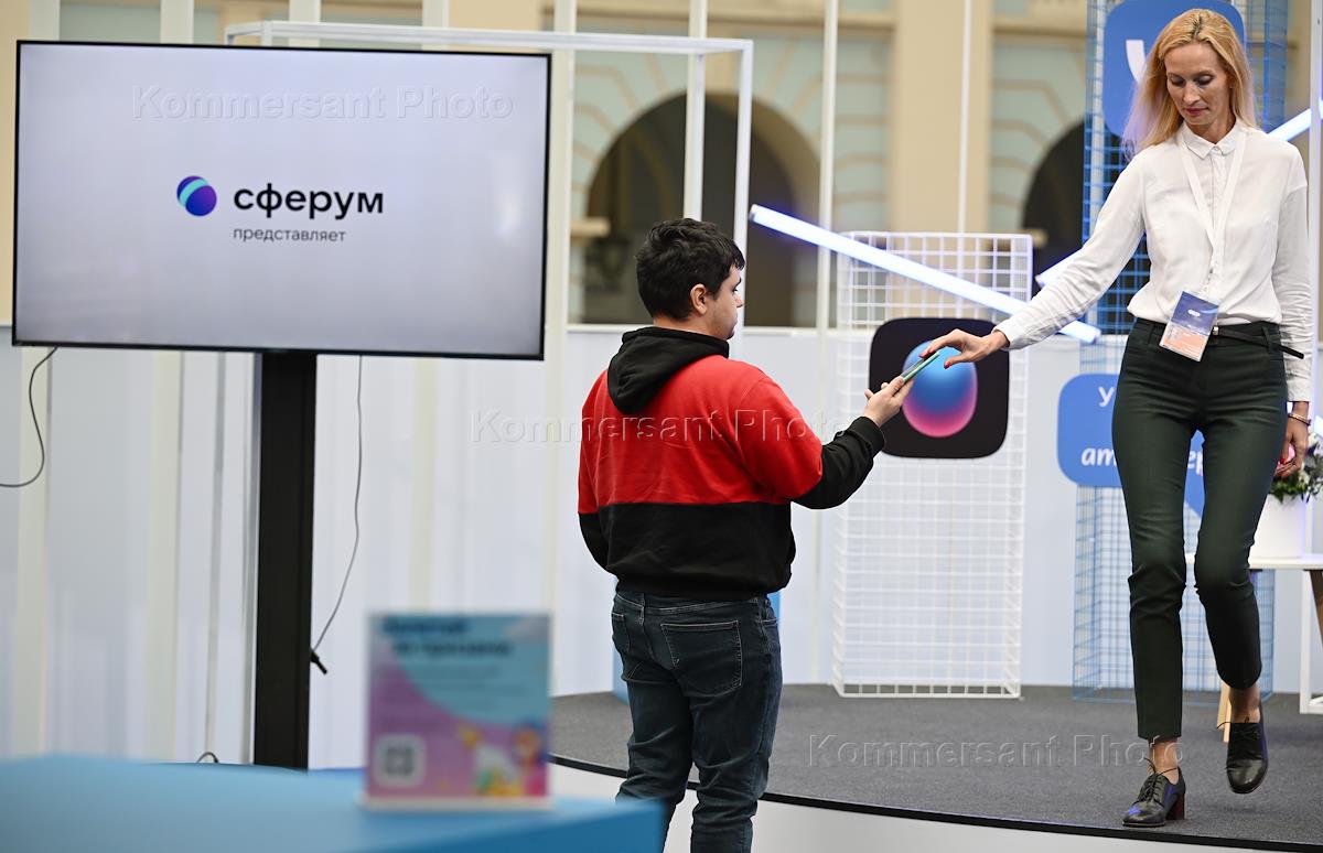 III Всероссийский Форум классных руководителей в Гостином дворе. Жанровая фотография. Стенд информационно-коммуникационной платформы "Сферум".