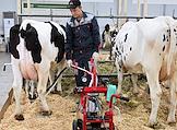 XXV Российская агропромышленная выставка "Золотая осень 2023" в Российском государственном аграрном университете (РГАУ-МСХА) имени К.А.Тимирязева. Жанровая фотография. Рабочий во время показа работы доильного аппарата на выставке.