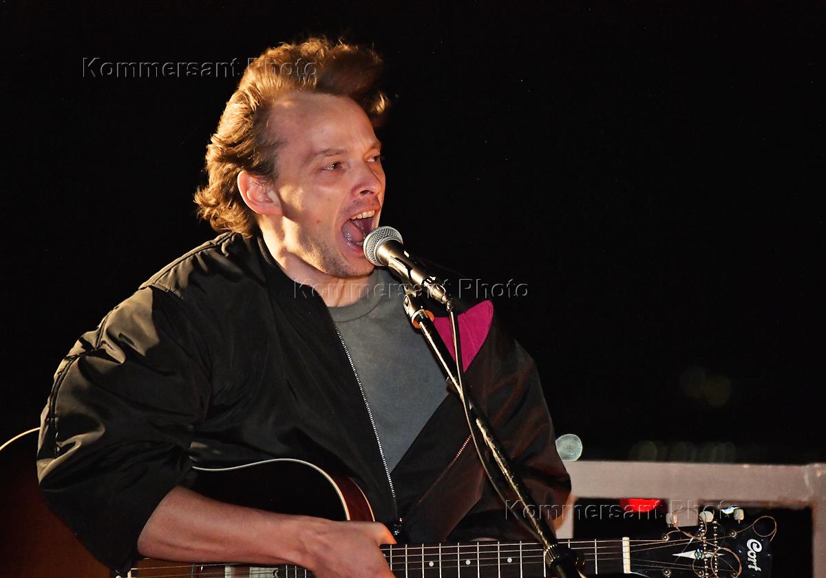 Фестиваль актуального российского кино "Маяк" в киноконцертном зале "Метрополь Гранд Отель Геленджик". Актер Евгений Серзин на музыкальном вечере в ресторане "Маяк Рассвет" в рамках кинофестиваля.