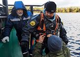 Волховская ГЭС. Жанровая фотография. Водолаз Сергей Мишкин готовится к погружению для обследования дна и поска касенных валунов.