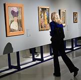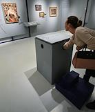 Выставка "Автор неизвестен. Коснутся главного" в Музее русского импрессионизма (МРИ). Посетительница на выставке.