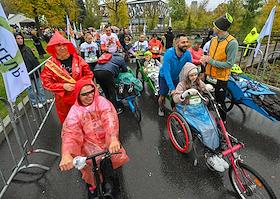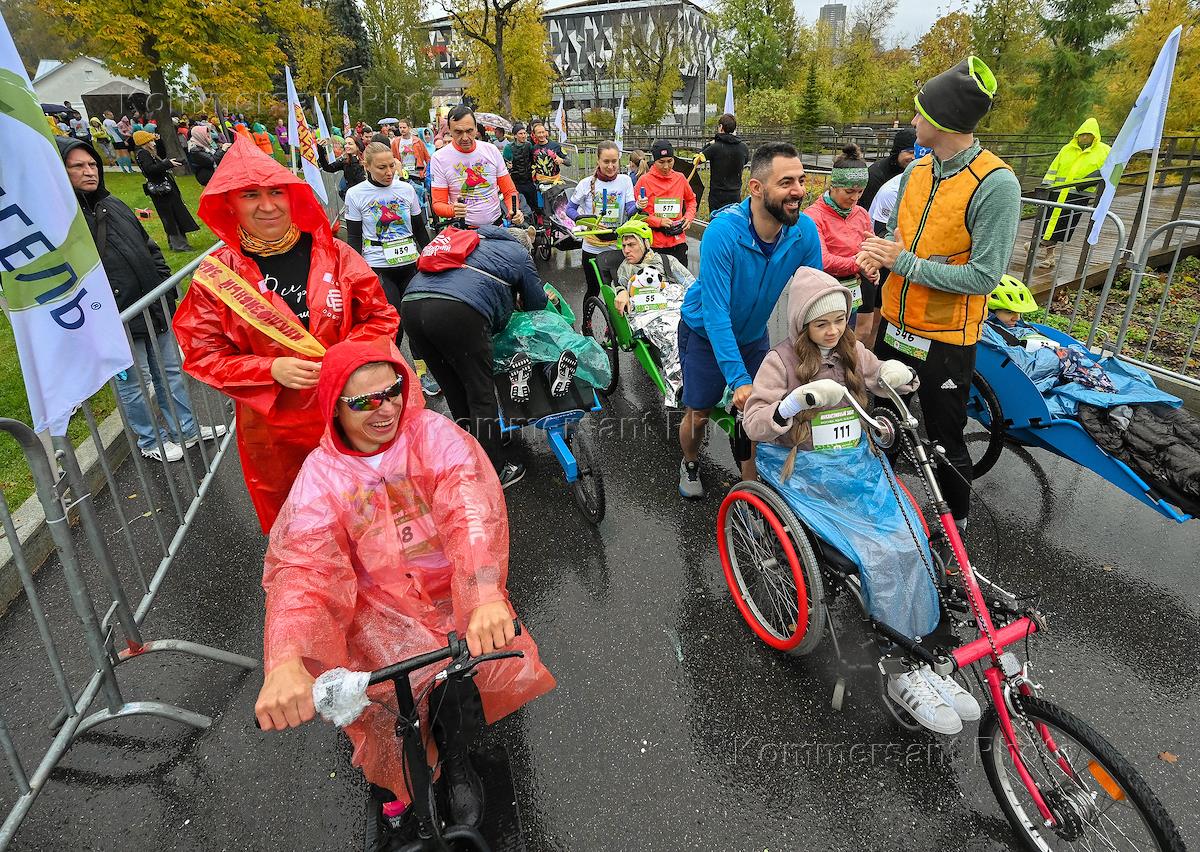 Фестиваль инклюзии в спорте, организованный благотворительным фондом "Больше Чем Можешь" на территории выставочного комплекса ВДНХ. Старт участников фестиваля на инвалидных колясках.