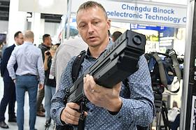 XXVII Международная выставка средств безопасности государства "Интерполитех – 2023" в павильон № 57 ВДНХ. Стенд компании "3MX". Комплекс по борьбе с FPV дронами "Сания" на стенде.