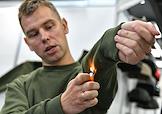 XXVII Международная выставка средств безопасности государства "Интерполитех – 2023" в павильон № 57 ВДНХ. Стенд компании ООО "СТЯГ". Демонстрация качества негорючего материала в военной форме.