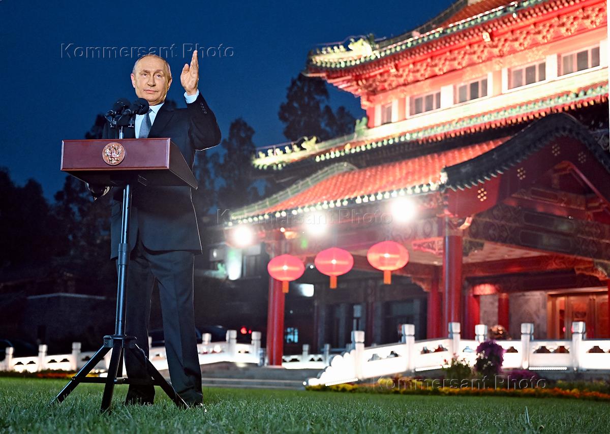 Рабочая поездка президента России Владимира Путина в Китай. III Международный форум "Один пояс, один путь". Президент России Владимир Путин отвечает на вопросы российских журналистов по итогам форума в резиденции "Дяоюйтай".