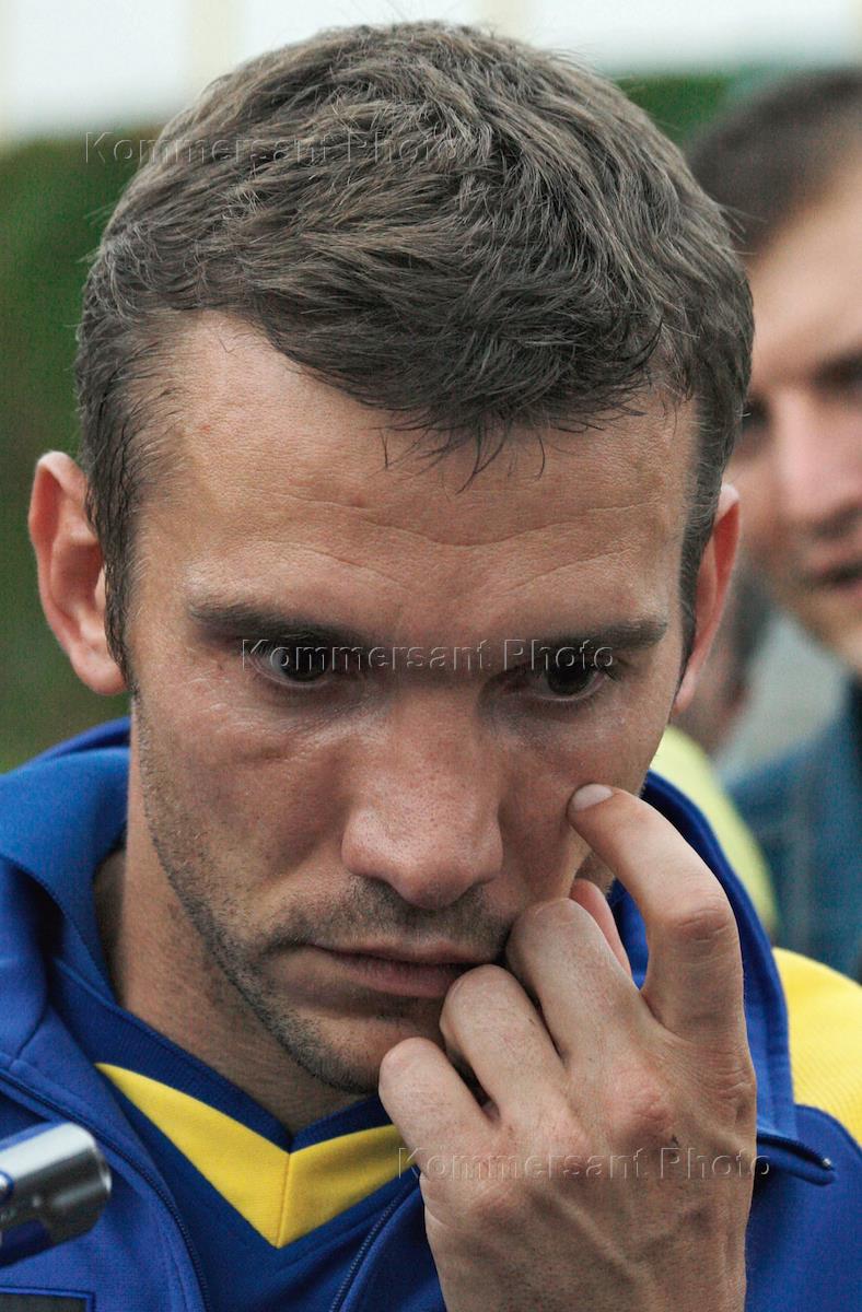 Игрок сборной команды Украины по футболу Андрей Шевченко на тренировочной базе "Динамо" перед началом товарищеского матча.