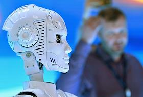 Международный экспортный форум "Сделано в России" в ЦВЗ "Манеж". Жанровая фотография. Робот на выставке форума.