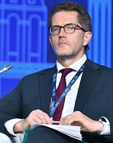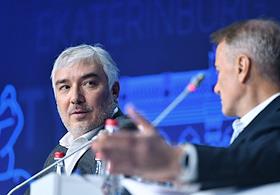Международный экспортный форум "Сделано в России" в ЦВЗ "Манеж". Пленарная сессия "Единороги на рынках будущего". Председатель совета Директоров "Альтера Капитал", профессор НИУ ВШЭ Кирилл Андросов во время заседания сессии.