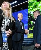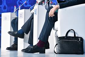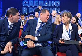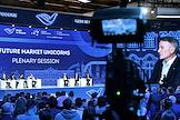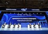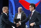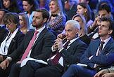 Международный экспортный форум "Сделано в России" в ЦВЗ "Манеж". Пленарная сессия "Единороги на рынках будущего". Жанровая фотография. Участники пленарной сессии.