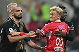 Российская Премьер-Лига (РПЛ). МИР - Чемпионат России по футболу 2023/2024. 12-й тур. Матч между командами "Спартак" (Москва) - "Пари Нижний Новгород" (Нижний Новгород) на стадионе "Открытие Банк Арена". Игрок команды "Спартак" Срджан Бабич (слева) и игрок команды "Пари Нижний Новгород" Эдгар Севикян (справа) во время матча.