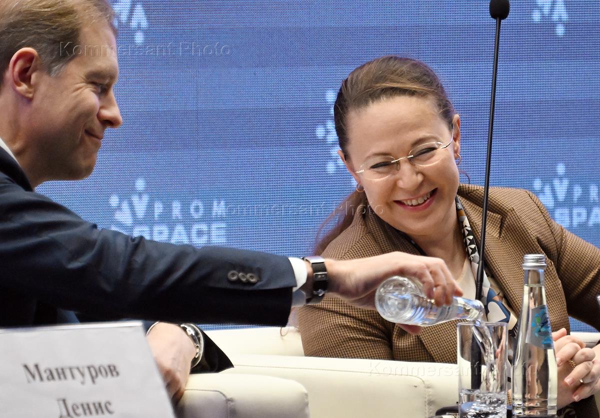 International Polytechnic Exhibition "Equipment and technology for processing structural materials "Technoforum" at the Central Exhibition Complex "Expocentre". XVIII National Industrial Congress PROMSPACE on the topic: "Strategy for the implementation of projects of technological sovereignty and structural adaptation of the economy" as part of the exhibition. Deputy Chairman of the Russian Government - Minister industry and trade of Russia Denis Manturov (left) and Deputy Prime Minister - Minister of Investment, Industry and Science of the Moscow Region Ekaterina Zinovieva (right) at the congress.
