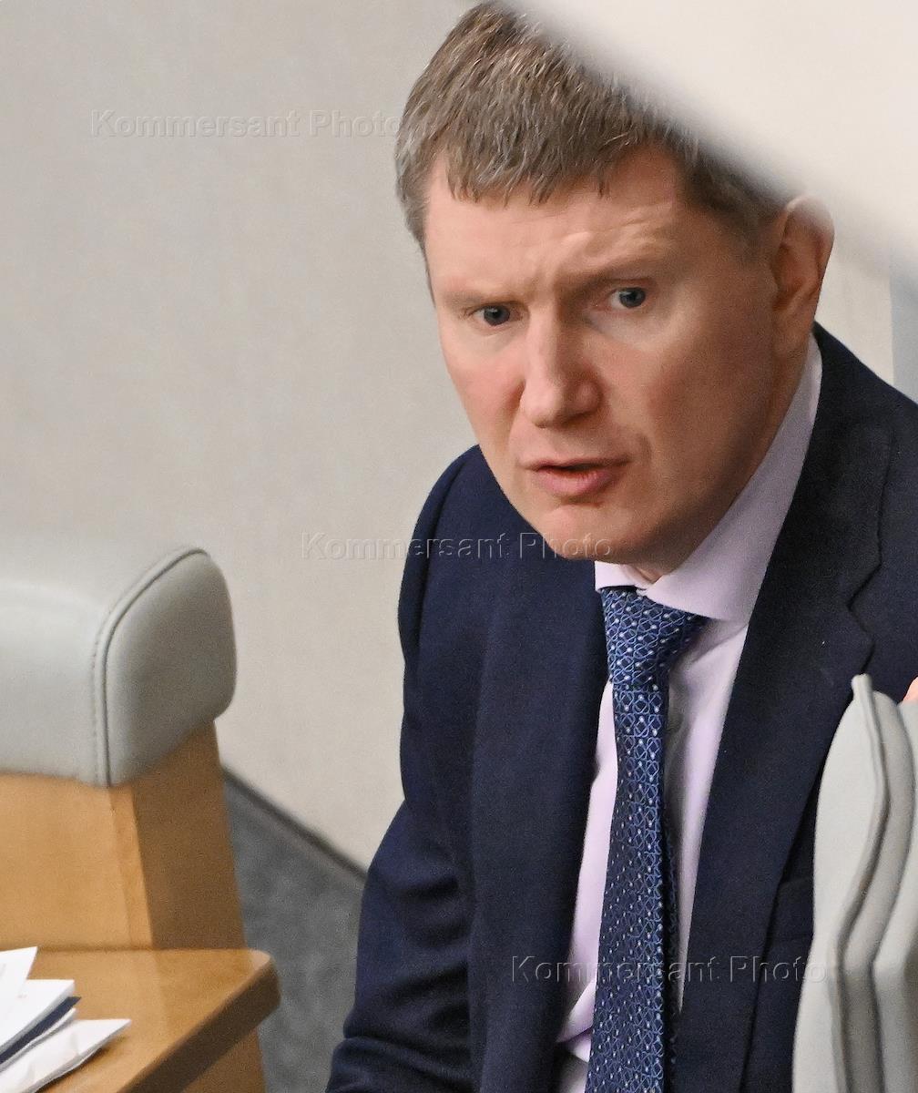 Parliamentary hearings on the topic: “Development of small and medium-sized businesses in the Russian Federation: objectives, prospects, legislative support” in the State Duma of Russia. Russian Minister of Economic Development Maxim Reshetnikov (left) at the hearing.