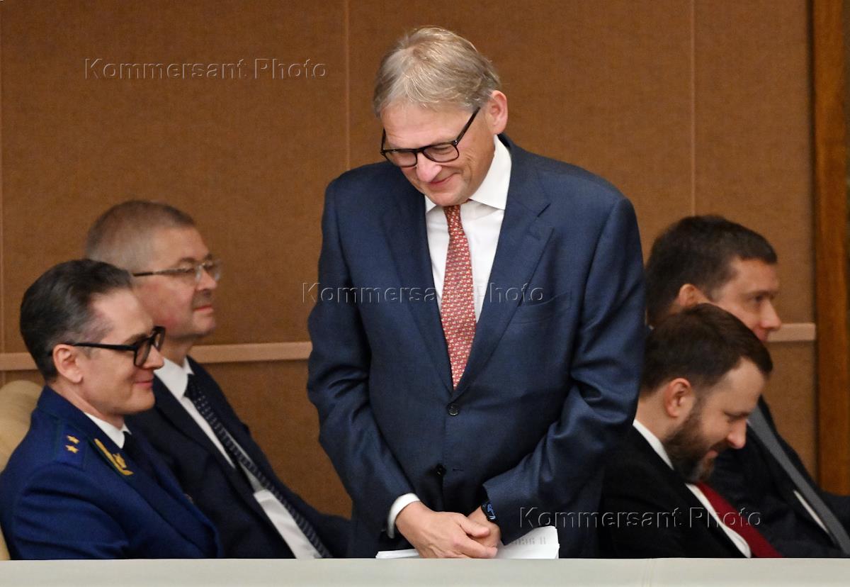 Parliamentary hearings on the topic: “Development of small and medium-sized businesses in the Russian Federation: objectives, prospects, legislative support” in the State Duma of Russia. First Deputy Prosecutor General of Russia Anatoly Razinkin (left) and Assistant to the President of Russia Maxim Oreshkin (center) at the hearing.