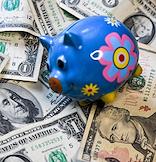Жанровая фотография. Денежные знаки. Свинья-копилка на долларовых купюрах.