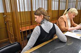 Рассмотрение ходатайства следствия о продлении срока домашнего ареста блогеру Елене Блиновской, обвиняемой в неуплате налогов на общую сумму свыше 918 млн руб., в Замоскворецком районном суде. Блогер Елена Блиновская (слева) и адвокат Наталья Сальникова (справа) во время заседания. Блогер Елена Блиновская перед началом заседания суда.