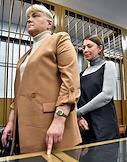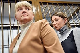 Рассмотрение ходатайства следствия о продлении срока домашнего ареста блогеру Елене Блиновской, обвиняемой в неуплате налогов на общую сумму свыше 918 млн руб., в Замоскворецком районном суде. Блогер Елена Блиновская (слева) и адвокат Наталья Сальникова (справа) во время заседания суда.
