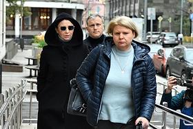 Рассмотрение ходатайства следствия о продлении срока домашнего ареста блогеру Елене Блиновской, обвиняемой в неуплате налогов на общую сумму свыше 918 млн руб., в Замоскворецком районном суде. Блогер Елена Блиновская (слева) и супруг блогера и интернет-коуча Елены Блиновской Алексей Блиновский (справа) после заседания суда.