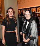 Праздничный вечер, посвященный 125-летнему юбилею Московского Художественного театра. Премьера спектакля "9 ряд. 10, 11 место" режиссера Дениса Азарова по пьесе Юлии Поспеловой на сцене МХТ имени А.П.Чехова. Режиссер Анна Меликян (слева) и дизайнер Светлана Тегин (справа) перед началом спектакля.