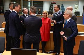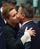 Саммит Европейского союза (ЕС) в Брюсселе. Премьер-министр Дании Метте Фредериксен (слева) и премьер-министр Люксембурга Ксавье Беттель (справа) на саммите.