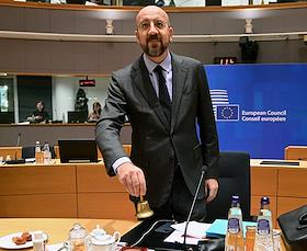 Саммит Европейского союза (ЕС) в Брюсселе. Председатель Европейского совета Шарль Мишель (слева) во время саммита.