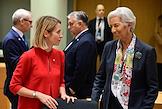 Саммит Европейского союза (ЕС) в Брюсселе. Премьер-министр Эстонии Кая Каллас (слева) и управляющий директор Международного валютного фонда (МВФ) Кристин Лагард (справа) во время саммита.