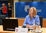 Саммит Европейского союза (ЕС) в Брюсселе. Премьер-министр Латвии Эвика Силиня во время саммита.