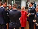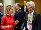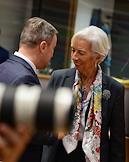 Саммит Европейского союза (ЕС) в Брюсселе. Премьер-министр Люксембурга Ксавье Беттель (слева) и управляющий директор Международного валютного фонда (МВФ) Кристин Лагард (справа) во время саммита.