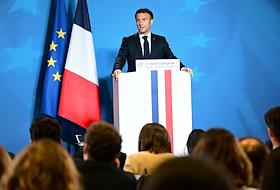 Саммит Европейского союза (ЕС) в Брюсселе. Президент Франции Эммануэль Макрон (в центре) во время саммита.